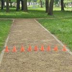 Indeed, yesterday’s walk led to meaningful discoveries. When I rounded another bend, the young boy on his wobbly bicycle smiled at me through the trees. This time, his entire family laughed as I skirted his bike each time he skidded to a stop. After a while, I noticed orange cones up ahead. Someone had placed a row of these small, conical objects in the middle of the dirt path, probably to prevent the boy from riding out of the park—safety obstacles from people who cared: most likely, his loving family.